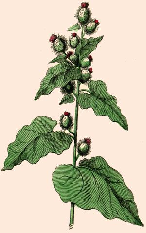 Sans doute, impressionnés par cette puissante racine noire, les hommes en firent-ils d’abord un objet magique. Ainsi, suspendre une racine de bardane au dessus de l’âtre et la caresser chaque soir avant de se coucher, assurait un sommeil réparateur et sans cauchemars.