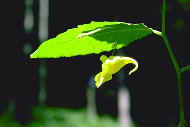 La balsamine des bois ou Herbe de Ste Catherine ou Pain de coucou ou encore Ne-me-touchez-pas, Impatiens noli-tangere de la famille des Balsaminaceae C’est une plante annuelle ayant une taille comprise entre 20cm et 1m, d’un vert clair, dotée d’une tige dressée, renflée aux nœuds, translucide et succulente.