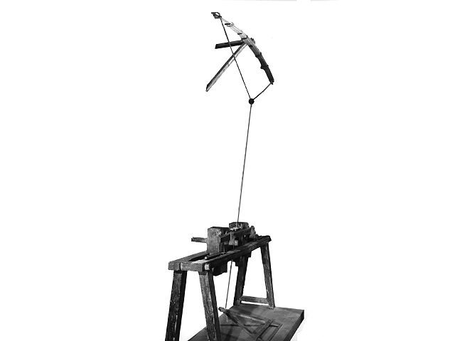 Tour à bois à ficelle et pédale, ou à archet pour travailler le bois.