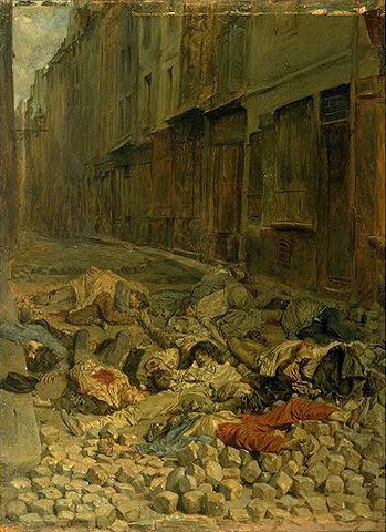 “Mon cher Alfred, vous me demandez ce que je pense du destin de la Barricade… Parler de son œuvre et en dire tout le bien qu’il en pense n’est pas chose facile pour un artiste… quand je l’ai fait, j’étais encore sous la terrible impression du spectacle que je venais de voir et, croyez-le, mon cher Alfred, ces choses là vous entrent dans l’âme. Quand on les reproduit, ce n’est pas seulement pour faire une œuvre, c’est qu’on a été ému jusqu’au fond des entrailles, et qu’il faut que ce souvenir reste. J’étais alors capitaine d’artillerie dans la garde nationale ; depuis trois jours que nous nous battions, j’avais eu des hommes tués et blessés dans ma batterie. L’insurrection entourait l’hôtel de ville où nous étions, et quand cette barricade de la rue de la Mortellerie venait d’être prise, je l’ai vue dans toute son horreur : ses défenseurs tués, fusillés, jetés par les fenêtres, couvrant le sol de leurs cadavres, la terre n’ayant pas encore bu tout le sang… Mais voilà, cher ami, que je me laisse entraîner par les souvenirs….-Meissonier-, lettre adressée à Alfred Stevens 22 octobre 1890.