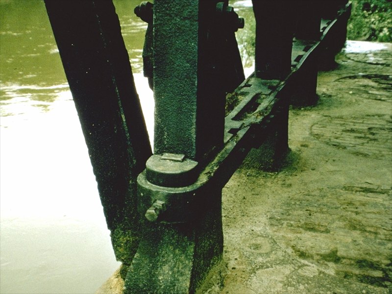 La conception est calquée sur les ponts en bois avec des assemblages par tenons et mortaises, cales, etc.
