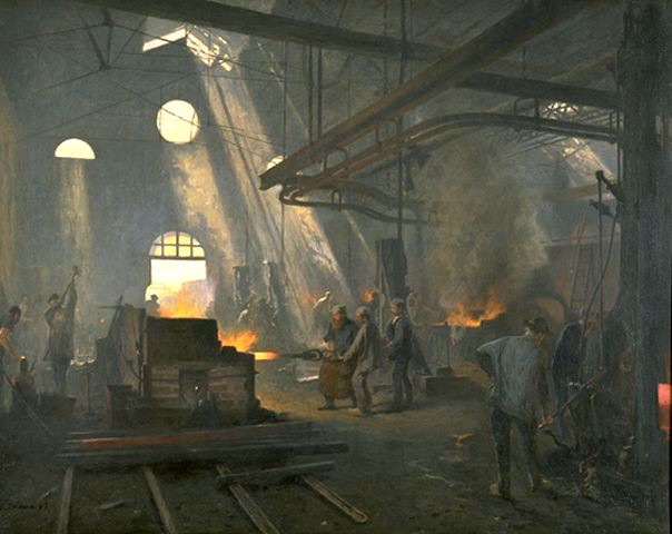 Dès 1784, on produit le fer en grande quantité par la technique du puddlage qui consiste à brasser à la main, à l’aide de longs crochets, une masse aveuglante de métal pâteux pour en éliminer le carbone et les impuretés. Le puddleur est certes le mieux payé des employés de la sidérurgie, mais il travaille douze heures par jour et meurt jeune. Peu d’ouvriers atteignent cinquante ans.