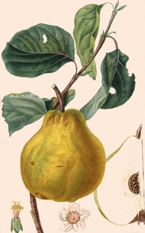 Le cognassier ou cognier ou pomme d’orcogner, Cydonia oblonga, de la famille des Rosaceae, est un arbre spontané dans les bois du nord de la Perse, près de la mer Caspienne, en Anatolie et à l’ouest de la Grèce.