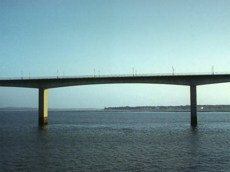 pont poutre à voussoirs préfabriqués avec des travées de rive de 40 m et quatre travées centrales de 80 m reposant sur quarante-cinq piles.