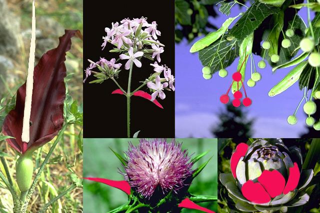 sur la photo, certaines bractées sont colorées en rouge pour les indiquer.