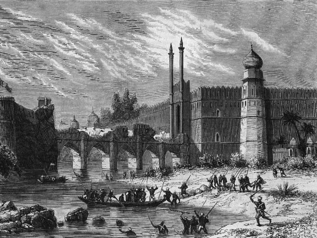 L’occasion ou le prétexte ? Les nouvelles cartouches qu’il faut déchirer avec les dents seraient graissées à la graisse de vache (animal impur aux yeux des Cipayes hindous) ou à la graisse de porc (animal impur aux yeux des Cipayes musulmans). Les Cipayes du régiment de cavalerie, stationnés à Meerut, se révoltent et massacrent officiers britanniques, femmes et enfants, s’emparent de Delhi, la capitale et rétablissent le vieil empereur, Bahadur Shah.