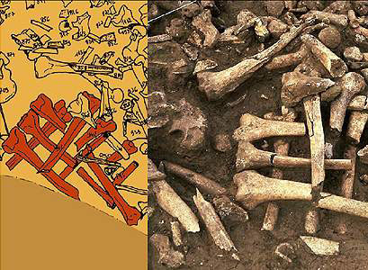 Quand on ne trouve qu’un os (d’animal ou d’homme), que le tesson d’un vase ou que quelques pierres d’un mur, il est intéressant d’essayer de reconstituer l’ensemble à partir du fragment. Pour ce faire on se reporte en général aux autres découvertes plus complètes faites au même endroit où à la même époque. Ensuite, grâce au dessin on peut parvenir à reconstituer un ensemble cohérent (un squelette complet, un vase entier …) qui ne colle peut-être pas à la réalité de l’époque mais qui donne une idée relativement claire de ce qu’elle pouvait être.