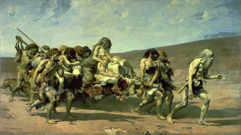 La découverte des peintures rupestres bouleverse les peintres, ce qu’on comprend aisément, la préhistoire hante les esprits certes, mais pas au point de faire oublier la civilisation judéo-chrétienne et son grand livre, la bible. Cormon fait passer la préhistoire par le chemin obligé de la culture, Renan n’a pas encore triomphé, et la lecture des choses se fait toujours à travers le crible culturel des mythes qui encadrent l’humanisme qui s’est justement constitué réellement comme pensée au XIXe siècle .